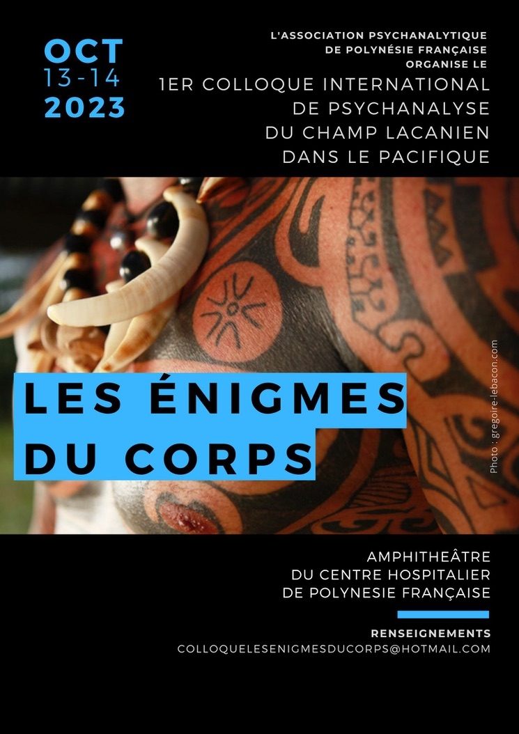 1er colloque international de psychanalyse du champ lacanien dans le Pacifique. Organisé au Centre hospitalier de la Polynésie française (amphithéâtre), il est ouvert à toute personne intéressée par l’approche de la question des énigmes du corps par la psychanalyse.