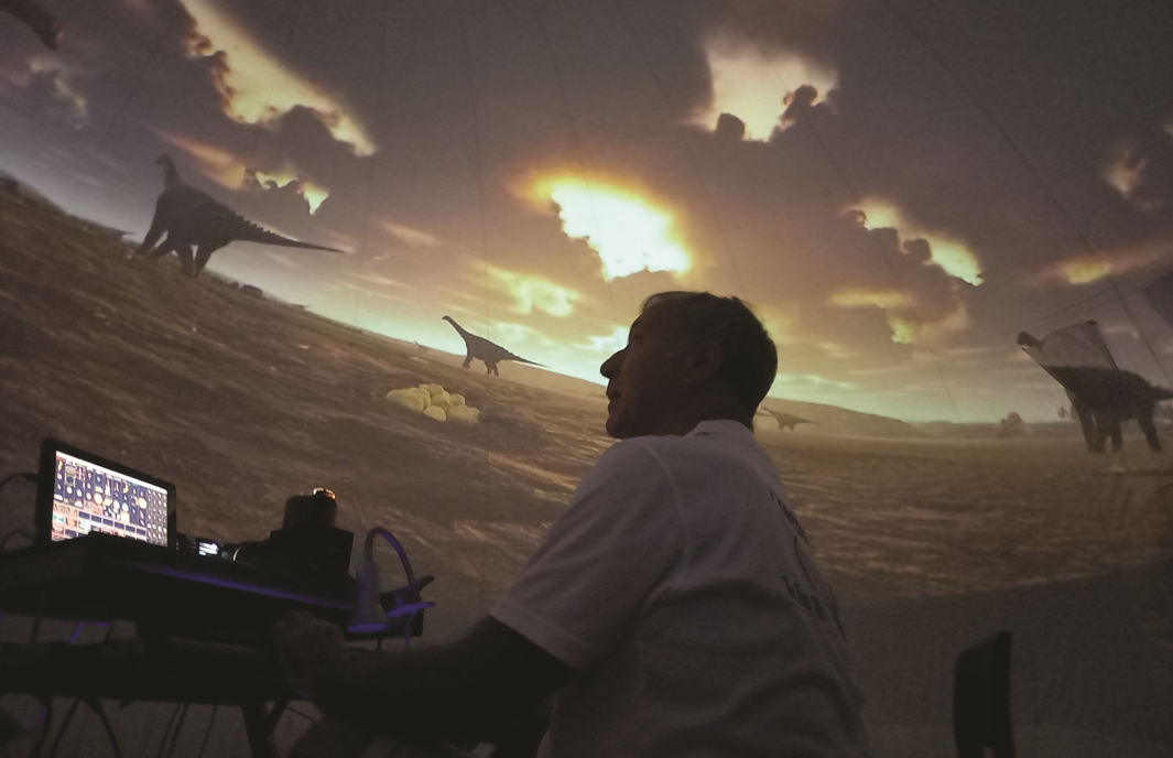 “C’est une première”, annonce Régis Plichart, de l’association Proscience. “Nous proposons toute cette semaine la projection d’un film dans le planétarium.” Ce film est un documentaire sur les dinosaures qui est intitulé Dinosaures, une histoire de survie et qui s’adresse à un très large public dès 6 ans. Il dure une petite trentaine de minutes. Il raconte l’histoire d’une toute jeune fille, Céleste, fascinée par les dinosaures. Pour sa classe, Céleste prépare un exposé sur leur disparition lorsque Moon, un personnage très sage et un peu magique, pose une question étonnante : “Et si je vous disais qu'il y a encore des dinosaures parmi nous ?” Un voyage dans le temps démarre. Les spectateurs, embarqués dans ce voyage, vivent une aventure passionnante. Ils découvriront la Terre telle qu'elle était dans un passé très, très lointain, suivront les transformations que les dinosaures ont subi pendant des millions d'années jusqu’à leur disparition.