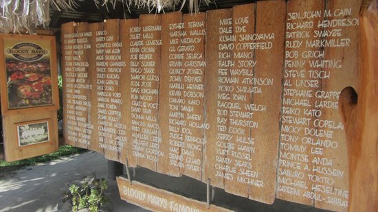 La notoriété du restaurant s'est également construite grâce au passage de nombreuses stars internationales de la musique, du cinéma ou encore du sport. Un "wall of fame" leur ait par ailleurs consacré. Des artistes aussi célèbres que Jimmy Buffet, Julio Iglesias, Steven Bishop, Ron Wood des Rolling Stones pour n'en nommer que quelques-uns ont un jour performé au Bloody Mary's. Les stars hollywoodiennes telles que Pierce Brosnan, Léonardo Di Caprio, Kurt Russel, Johnny Depp et les légendes du basket-ball comme Kareem Abdul-Jabbar et Phil Jackson des Los Angeles Lakers sont tous à un moment de leur vie passé au Bloody Mary's.