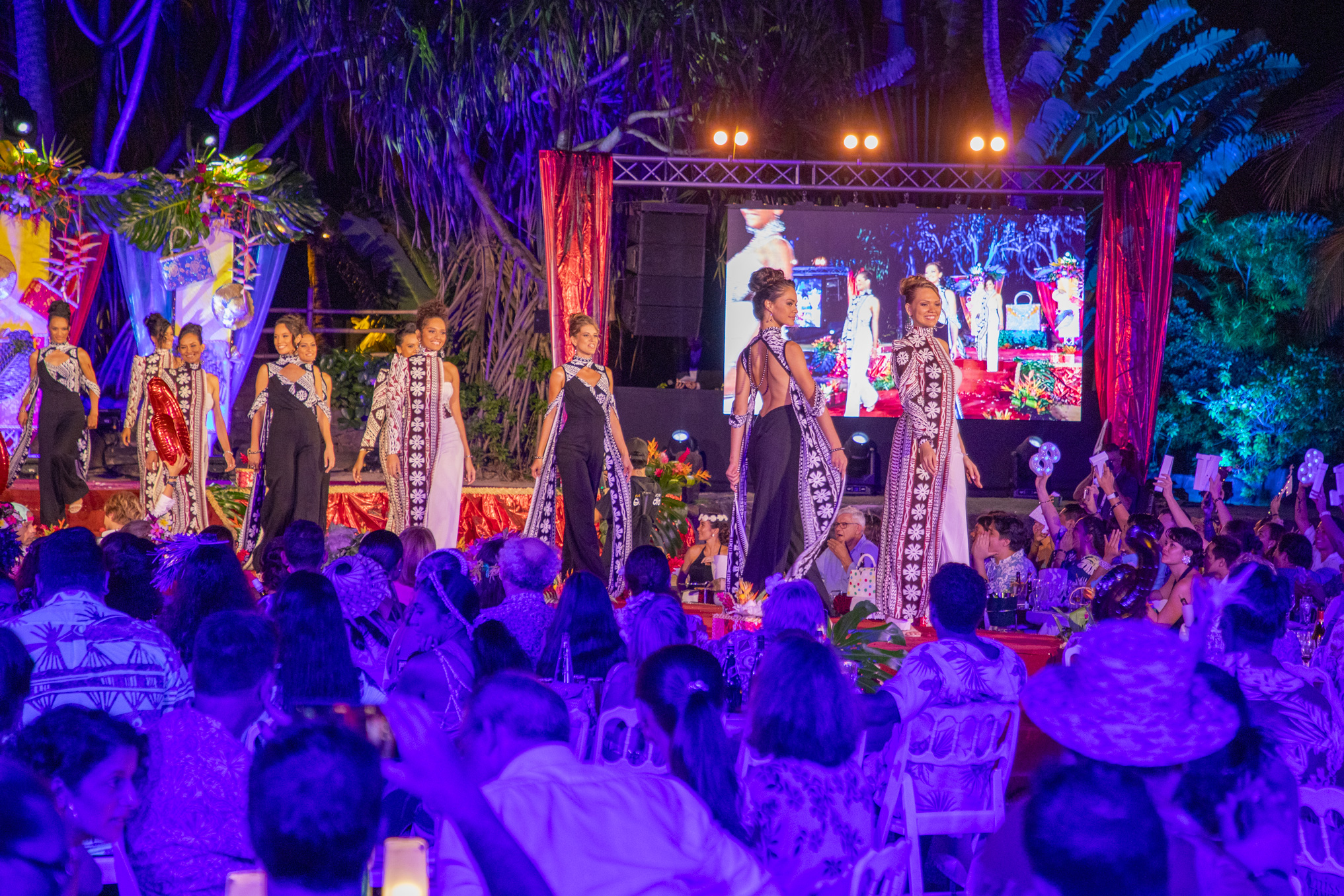 Les dix candidates se sont dévoilées au public samedi soir, lors du gala de Miss Tahiti. Photo : Tevahitua Brothers