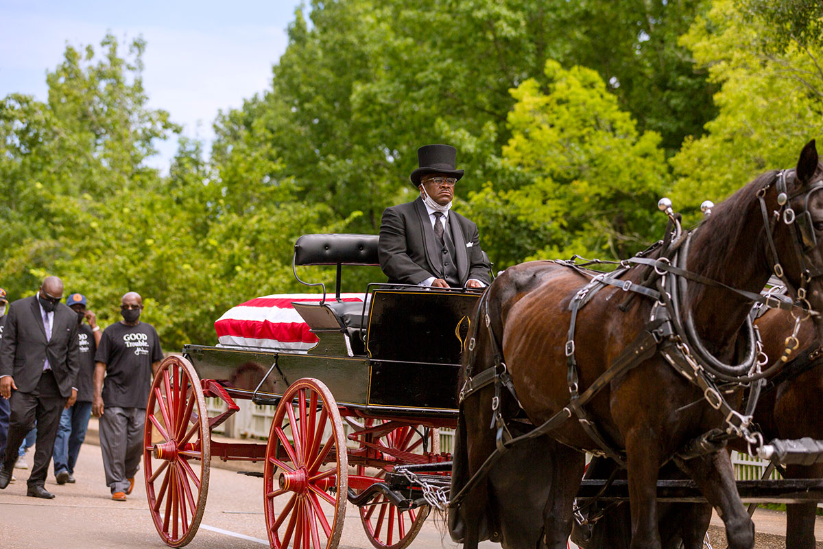 Washington, Etats-Unis | AFP | dimanche 26/07/2020 - Une calèche tirée par deux chevaux noirs a transporté dimanche la dépouille de John Lewis à travers le pont de l'Alabama où la figure américaine des droits civiques avait failli succomber en 1965 sous les coups de la police.
