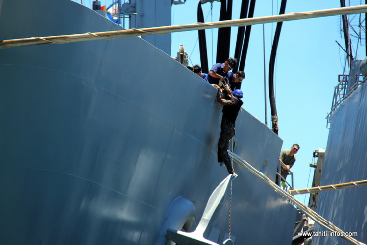 PAPEETE, le 16 octobre 2016 - Grosse frayeur, ce dimanche midi, pour un marin embarqué sur l'un des imposants navires militaires du groupe-école de la Marine de la République de Corée, en escale au port de Papeete jusqu'à mercredi.