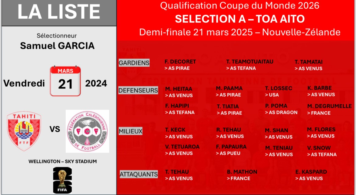 Mais Samuel Garcia, le coach de la sélection, se veut prudent. Fort de son expérience et de son investissement dans le football polynésien, Samuel prend les matchs les uns après les autres : “Avec cette formule, tous les matchs peuvent être les derniers. Du coup, il faut savoir gérer ces matchs. On discute beaucoup entre nous, car maintenant, nous avons créé un véritable socle de confiance. Avec le staff et les familles, on sait que ça va beaucoup se jouer au mental, donc on a tout fait pour que les joueurs soient bien. On a bien travaillé physiquement, tactiquement, et même si nous avons quelques joueurs qui ne sont pas régulièrement avec nous, comme Benoît, Teva, Mateo (Degrumelle, qui joue aussi en France) et François (Hapipi, qui évolue en Nouvelle-Zélande), toute l’épopée que nous avons vécue nous donne une force collective sur laquelle nous allons nous appuyer pour passer cette prochaine étape.”
