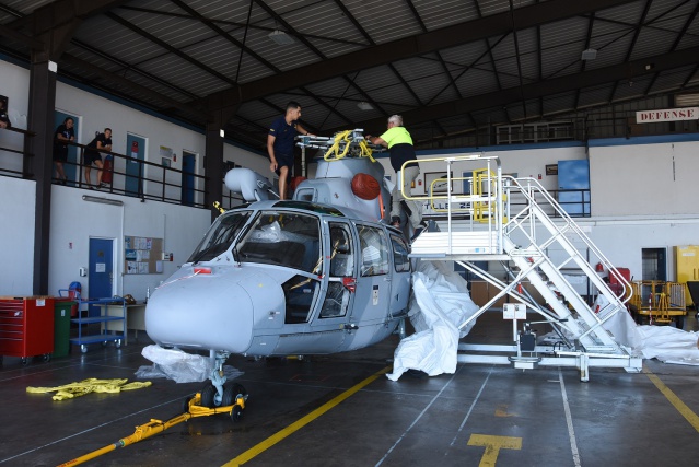 Tahiti, le 5 octobre 2022 – Un nouvel hélicoptère de la flottille 34F, le Dauphin N3, a rejoint mardi le groupement aéronautique militaire de Faa'a. Destiné à la frégate de surveillance le Prairial en Polynésie française, il remplace l'Alouette III. Il doit débuter ses missions dès novembre, une fois que les vols d'essai seront effectués.