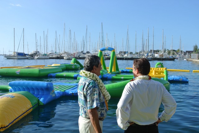 PUNAAUIA, le 21/11/2015 - "Tahiti Sea Parc" géré par Tamatea Shan, un entrepreneur habitué des activités nautiques, est une aire de jeu pour les petits et les grands, avec 46 bouées gonflables. Les baigneurs de la côte ouest pourront désormais profiter de cette nouvelle attraction à la plage publique de Taina, tous les week-ends et jours fériés. C'est le deuxième parc aquatique à voir le jour à Tahiti, après celui de Mahina.