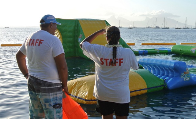 "Tahiti Sea Parc" sera disponible tous les week-ends et jours fériés, de 9 heures à 17 heures. Dans ce genre d'activités, la question de la sécurité n'a pas été écartée : "les gilets sont obligatoires et le parc sera surveillé par deux animateurs titulaires du brevet national de sécurité et de sauvetage aquatique (BNSSA)", assure Tamatea Shan, avant de rajouter : "Les utilisateurs devront mesurer au minimum 1,10 m et peser 90 kg".