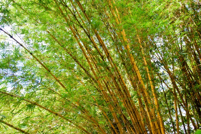 Le bambou est une graminée, une herbe, bien que certaines espèces peuvent dépasser les 30 m de haut. Le Bambou jaune est très reconnaissable par ses tiges ou chaumes de couleur jaune avec des rayures verticales vertes. Cette tige d'une hauteur pouvant atteindre plusieurs dizaines de mètres, est creuse et séparée par des cloisons.