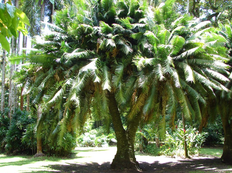 Le Cycas, originaire d'Asie, est l'une des plus vieilles plantes du monde. Cette plante, est en quelque sorte une relique de l'ère mésozoïque qui s'étend de -251 à -65,5 millions d'années, et au cours de laquelle apparaissent des espèces de mammifères et de dinosaures. Bien que toxiques, ces plantes fournissaient à l’homme des aliments qui nécessitaient une préparation complexe pour être comestibles.