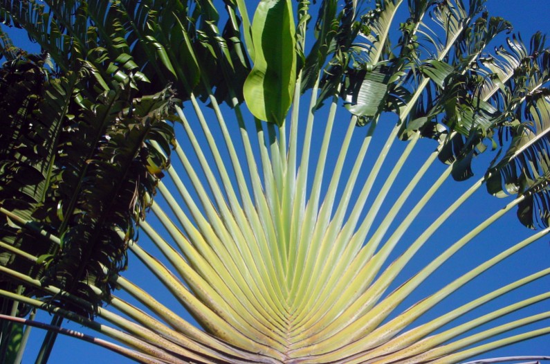 Ce grand éventail végétal, appelé communément « arbre du voyageur » car l'eau enfermée dans ce réceptacle naturel formé à la base des feuilles servait, dit-on, de boisson aux voyageurs assoiffés. Le Ravelana est l'arbre emblématique de Madagascar.