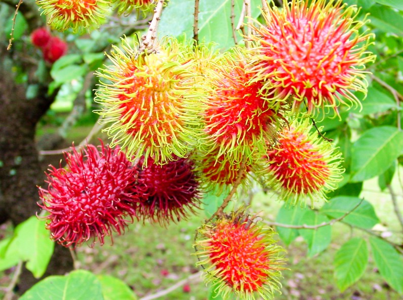 Cet arbre fruitier, indigène en Malaisie, a été introduit à Tahiti, par Harrison Smith vers 1930. Le fruit, de forme ovoïde, vert orangé à rouge, est recouvert d’épines molles charnues. Sa chair juteuse, blanchâtre et translucide, a une saveur sucrée et parfumée, plus ou moins acidulée selon les variétés.