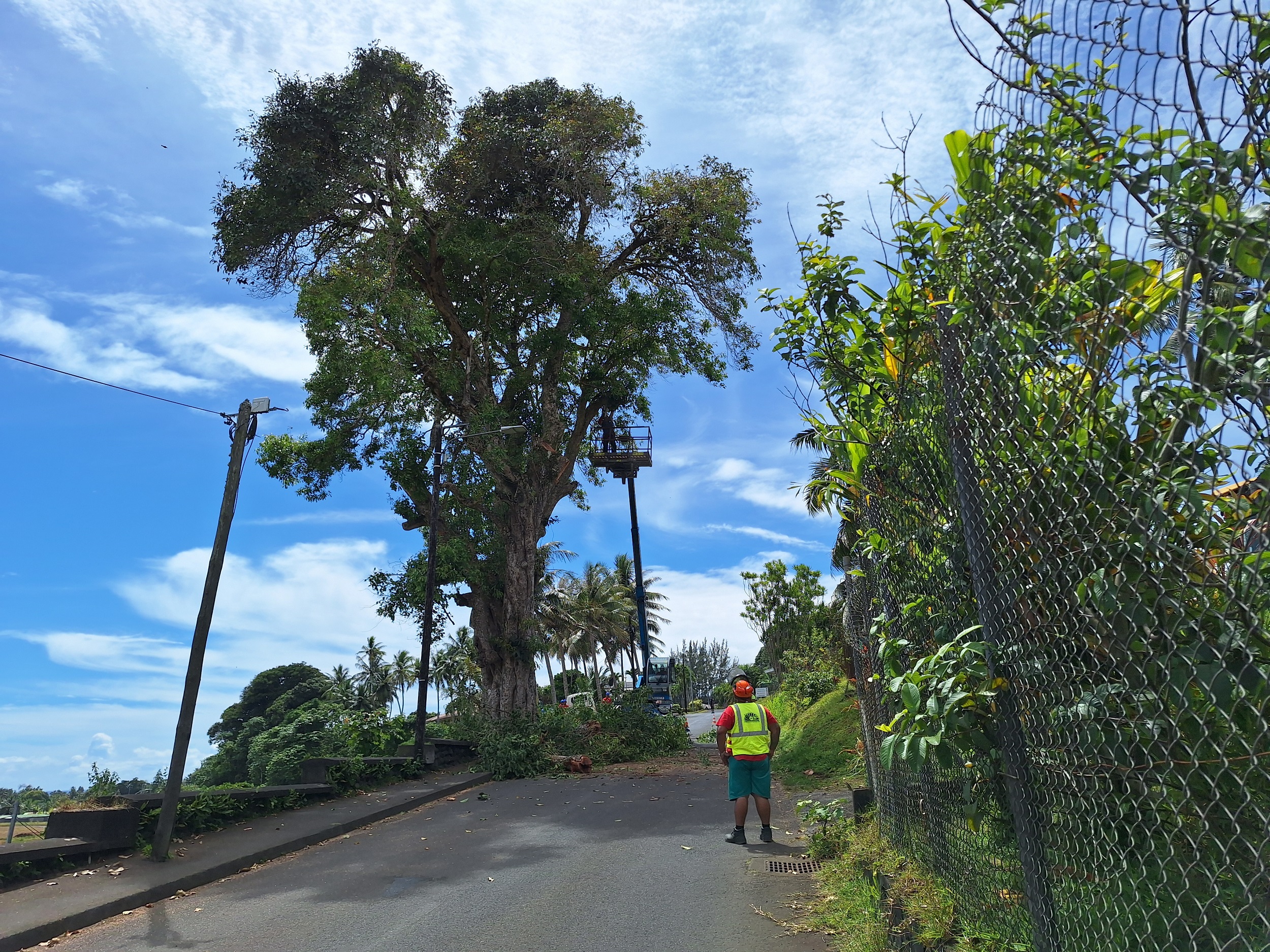 “Il est majestueux, mais il présente des dangers pour les usagers de la route qui donne accès à l'hôpital”, a indiqué la commune de Taiarapu-Est sur sa page Facebook, mardi matin, pour annoncer les travaux en cours sur le pistachier qui a abrité plusieurs générations de collégiens, en contre-bas de la mairie de Taravao. L'annonce de son “abattage” a suscité une vague d'émotions. Renseignements pris sur place auprès des équipes d'EDT et de la commune, il s'agissait en réalité d'un élagage, nécessaire pour garantir l'accès le plus rapide aux véhicules d'urgence. La circulation a été régulée le temps de l'intervention.
