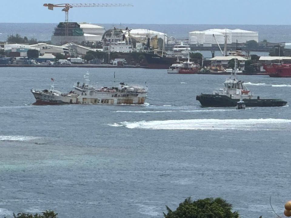 Un thonier chinois a été remorqué ce mercredi matin dans la passe de Papeete après s'être échoué. Crédit photo : FB Teddy Philippe.