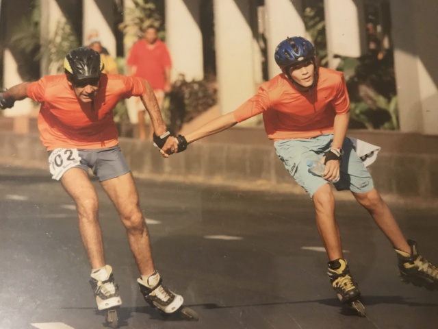 "On a commencé le roller en 2001 avec mon fils Fabien", raconte le sportif. "À cette époque-là, Eddy Madzer, champion du monde de la discipline était passé en Polynésie. On avait alors pas mal d’endroits où nous entraîner, à la Punaruu, à Vairao ou bien encore à Moorea. C’était une activité vraiment ludique, on a accroché et on a fait plusieurs courses." Son fils, depuis, a grandi. Il a aujourd’hui 27 ans et vit à Paris.