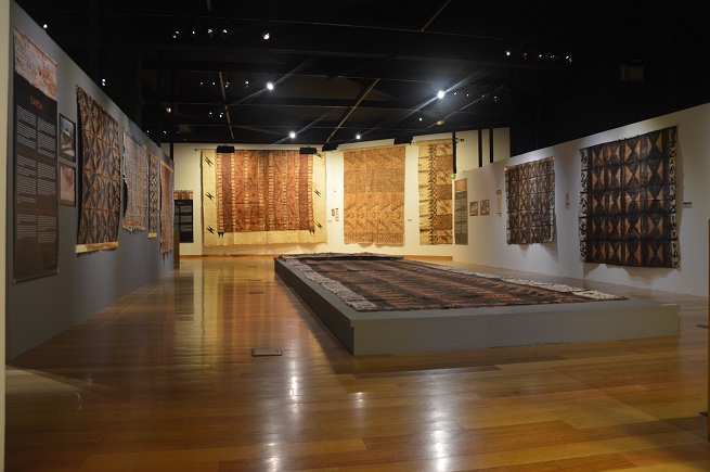 PUNAAUIA, le 15 janvier 2015. Il reste un peu plus d'un mois au public –jusqu'au 21 février prochain- pour (re)découvrir l'exposition de tapa océaniens réunis pour la première fois. Pour le public cette exposition de tapa sera certainement une découverte incroyable de ce matériau parfois baptisé «l’étoffe des Dieux », des mythes qui accompagnent sa création, et des usages religieux qui en ont été faits dans les différentes cultures de l’Océanie. Étoffe végétale fabriquée par battage de la partie interne de l’écorce d’un nombre limité de plantes, le tapa trouve ses origines il y a 7 000 ou 8 000 ans en Asie du Sud-est, berceau aujourd’hui reconnu du peuplement du Pacifique.