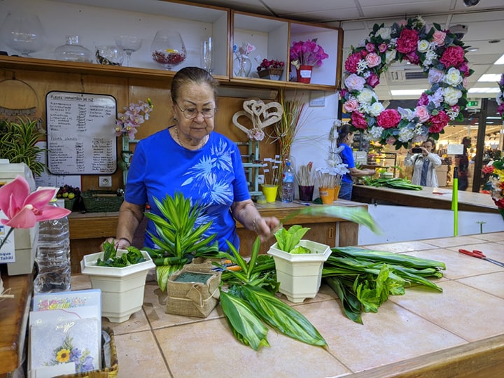 « On va essayer de faire de très beaux bouquets, originaux, avec les fleurs locales que l’on a sur le territoire, mais c’est vrai que cela risque de nous manquer de ne pas avoir de fleurs importées, car les clients les apprécient vraiment beaucoup », explique Mita Godefroy, fleuriste à Punaauia, qui s’applique à couper soigneusement des tiges vertes pour ses préparations florales.