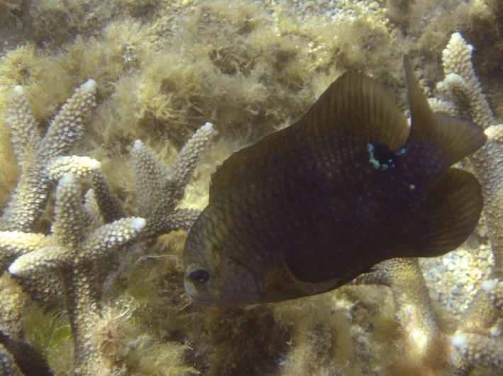 Le "Stegastes nigricans" a une particularité très intéressante parmi les animaux marins : très social, une communauté choisit un platier ou une patate de corail (vivant ou mort) et y cultive un gazon d'algues en éliminant continuellement, avec leurs bouches, toute impureté et types d'algues que ce poisson n'apprécie pas.