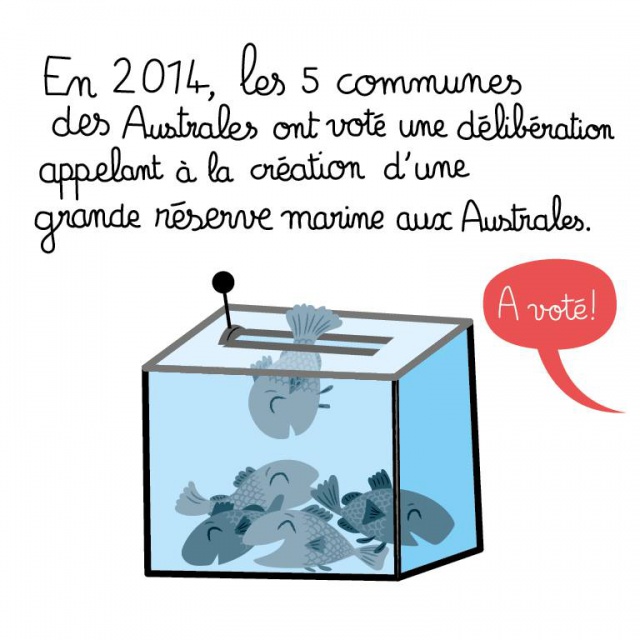 AUSTRALES, le 26/04/2017 - Pour mieux sensibiliser les habitants de l'archipel des Australes, au projet d'aire marine protégée porté par l'association Rāhui Nui nō Tuha’a Pae, rien de mieux que de faire passer le message au travers d'une bande dessinée. Cette BD a donc été réalisée par Benjamin Bécue, en partenariat avec l’association Rāhui Nui nō Tuha’a Pae, Te Ora Naho – Fédération des Associations de Protection de l’Environnement et Pew Polynésie. Des dessins avec des messages bien explicites sur la protection de nos ressources.