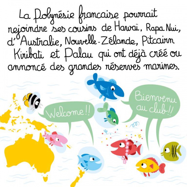 Et pour tenter de toucher un plus large public, une bande dessinée a été illustrée, en partenariat avec l’association Rāhui Nui nō Tuha’a Pae, Te Ora Naho – Fédération des Associations de Protection de l’Environnement et Pew Polynésie.