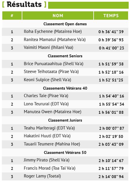 Rendez-vous le 29 mars pour la 19e édition de la Mata Are Va'a Race pour revoir tous ces champions de V1. Avant cela, le championnat polynésien en V6 reprend ses droits le samedi 15 mars.
