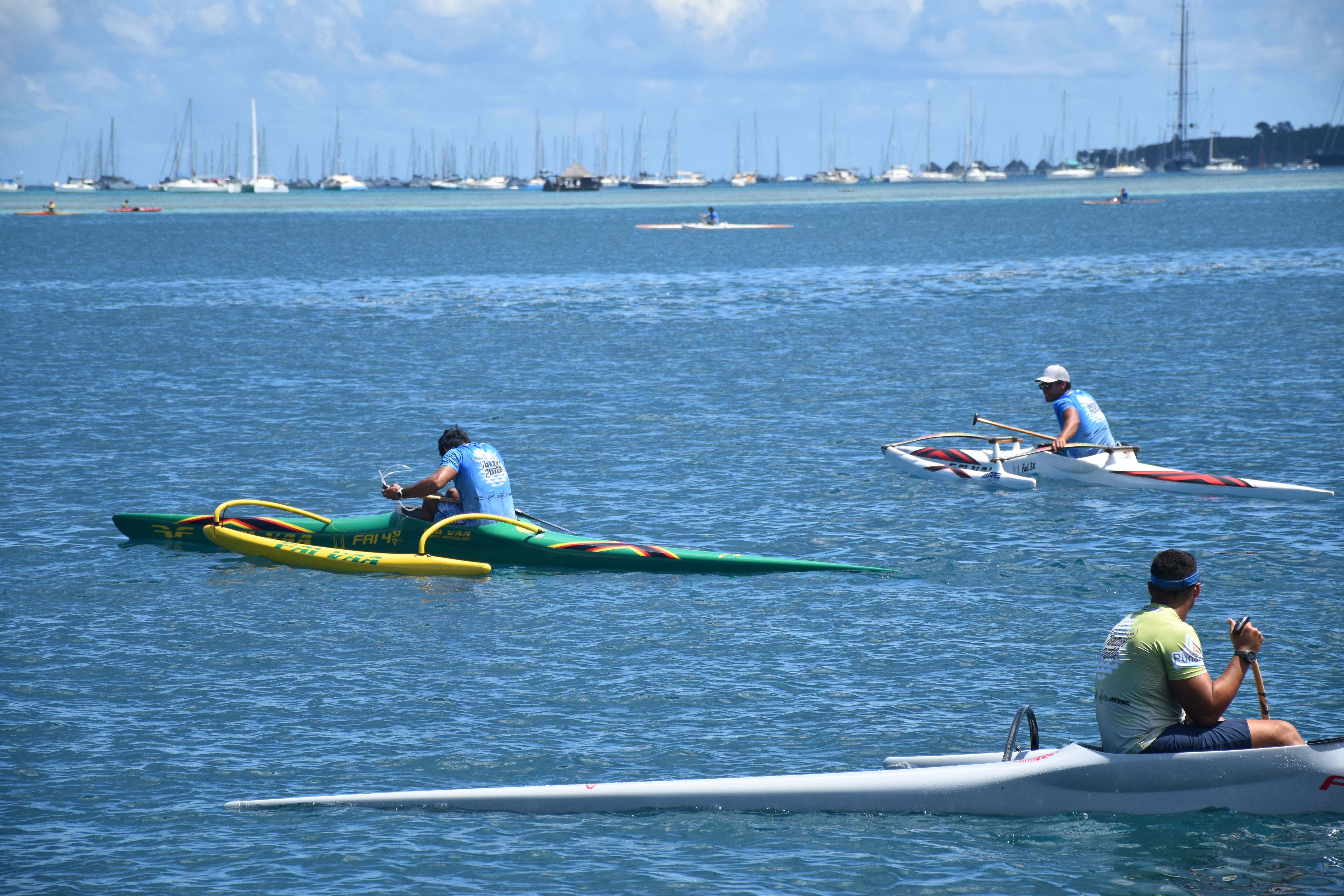 Les derniers à prendre le départ étaient les hommes. Sur une distance plus longue de 22 km et un passage à l’océan après avoir laissé le lagon par la passe de Papeete, les juniors, vétérans 40 et 50 et les seniors ont livré une bataille de tous les instants, surfant sur les vagues offertes par le Pacifique. Et à ce jeu-là, c’est Brice Punuataahitua, le rameur de Shell, qui a imposé son rythme dès le début, malgré une belle résistance de tous les concurrents, et notamment Steeve Teihotaata. Brice Punuataahitua a été le premier à franchir la ligne d’arrivée. Une course difficile, car tous les rameurs avaient faim de compétition, et le rythme maintenu durant toute la course a montré que cette année serait une année intense et que toutes les courses proposées au calendrier par la Fédération tahitienne de va’a seraient disputées.