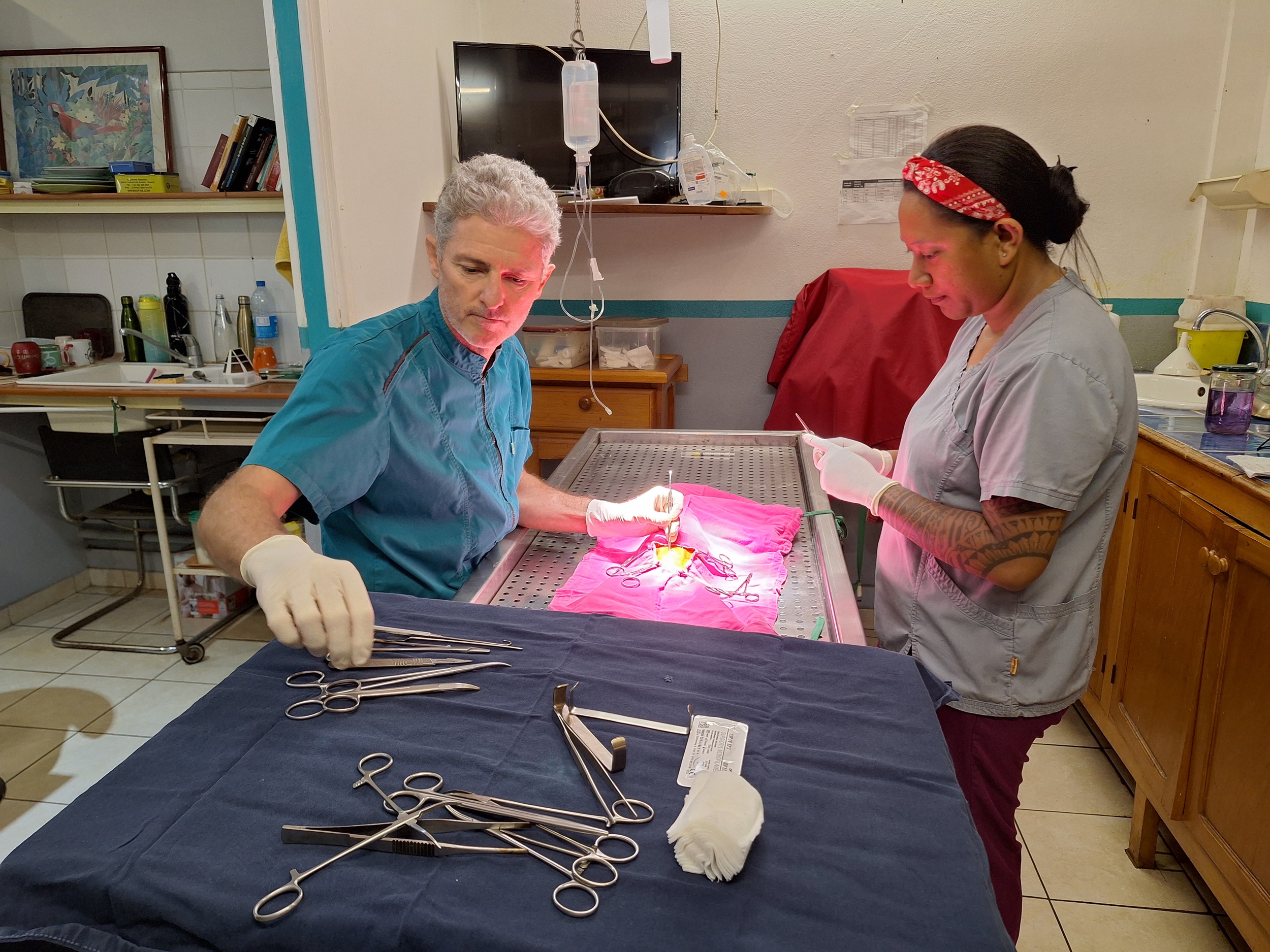 La gestion de la surpopulation animale concerne aussi les îles. Plusieurs vétérinaires organisent des missions dans les archipels, comme Lorenzo Manis et sa compagne, Margaux. “On essaie d’aller deux fois par an aux Marquises et à Fakarava, et dans d’autres îles selon les besoins, les opportunités de transport et notre emploi du temps. Avant, il n’y avait quasiment pas d’associations, sauf Nuku Hiva Animara. Notre travail, c’est aussi d’encourager la création d’associations pour favoriser ce type de campagne, notamment dans les îles peu touristiques, où les familles ont peu de moyens. Deux associations viennent de se monter à Fakarava et à Maupiti, et une autre va se monter à Hiva Oa. C’est positif ! Il faut que ça continue à évoluer dans ce sens-là, car il y a une réelle demande”, souligne le vétérinaire itinérant, lui-même en quête de soutien, à commencer par le transport aérien.