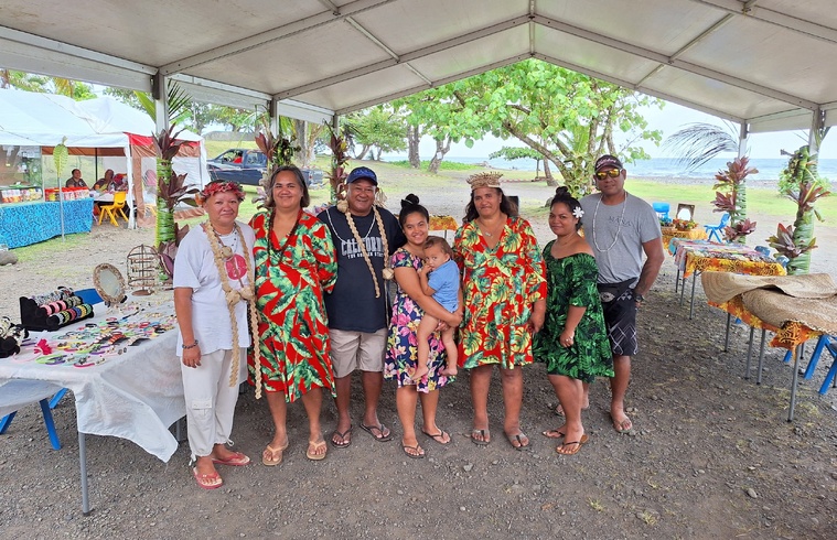 À 53 ans, la couturière autodidacte a multiplié les initiatives sur les réseaux sociaux et en porte-à-porte pour organiser cette exposition. “Je fais ça pour nos jeunes, et pour tous ceux qui n’ont pas de travail. Certains n’osent pas montrer leurs créations, donc c’est l’occasion de se lancer ! Il faut bien commencer quelque part avant d’aller exposer en ville”, remarque-t-elle, alternant elle-même entre des expositions à Mahaena et à Mama’o. “Habituellement, on expose à la mairie à chaque période de fête, mais cette fois-ci, j’ai eu envie de changer. C’est agréable en pleine nature !”
