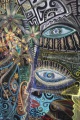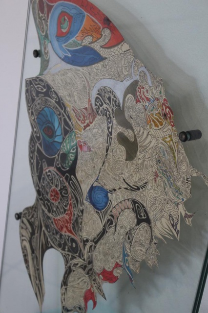 Éric Gresset, bien connu en tant que tatoueur, présente lui aussi des œuvres. Cet artiste explore différents domaines, supports et techniques artistiques. En plus du dessin à l’encre noir, il s’essaye aujourd’hui à la sculpture sur bois ou encore à la peinture. Pour l’exposition, il propose un éventail de ses nouvelles créations très colorées, en opposition au tatouage traditionnel.