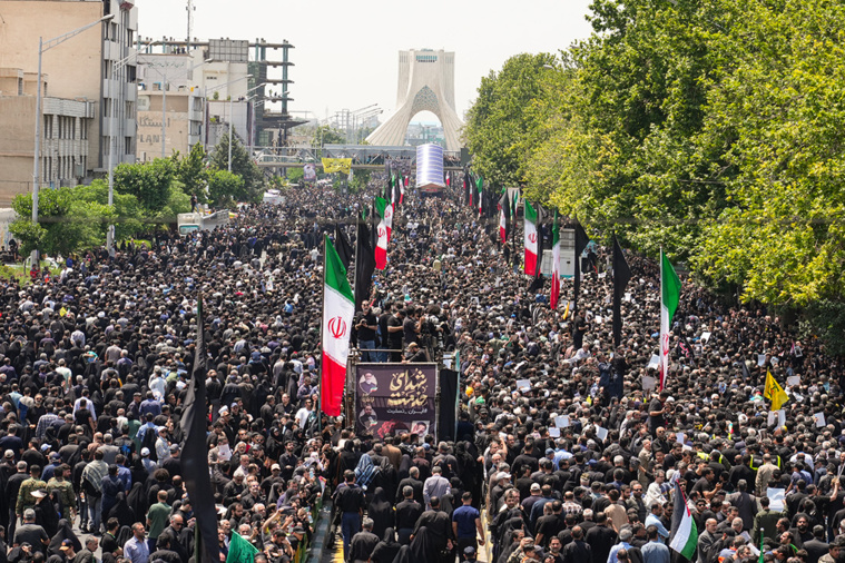 Téhéran, Iran | AFP | mercredi 22/05/2024 - Une foule immense s'est rassemblée mercredi dans le centre de Téhéran pour rendre un dernier hommage au président iranien, Ebrahim Raïssi, célébré comme un "martyr" après son décès dans le crash d'un hélicoptère.