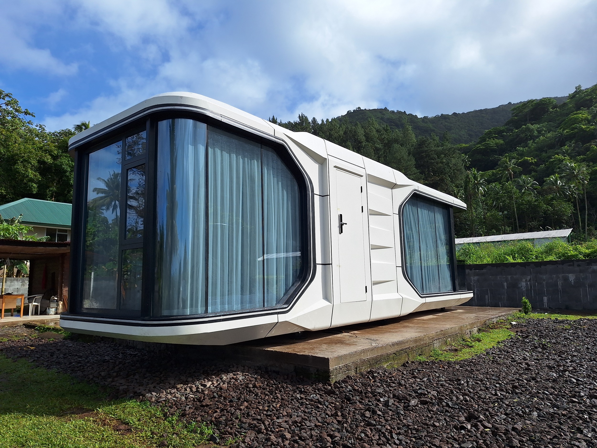 Après les maisons-containers et les tiny houses, c’est un nouveau modèle d’habitat tendance qui débarque au Fenua. “Yoann a vu le concept sur internet et ça l’a enthousiasmé. On est parti en Asie rencontrer plusieurs fournisseurs, et on a choisi de travailler avec l’un des deux meilleurs. Nous ne sommes pas les premiers à en avoir proposé, mais je crois que nous sommes les premiers à livrer une maison de ce genre sur site”, poursuit le co-gérant.
