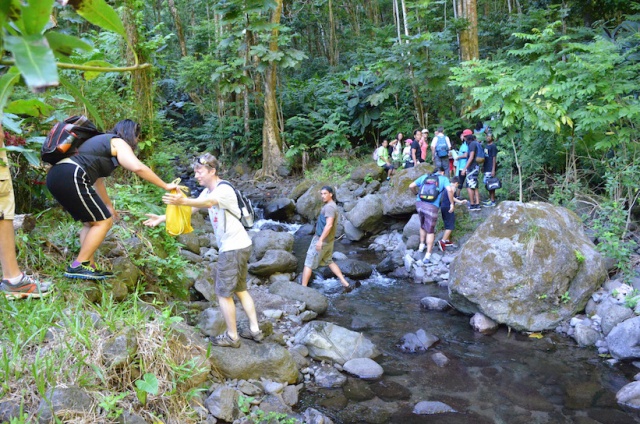PAPEETE, 25 mai 2015 - Une marche contre le géant américain de la biotechnologie agricole, Monsanto, a permis samedi à une cinquantaine de manifestants de découvrir les profondeurs de la vallée de Tipaerui, à l’initiative du collectif citoyen Gaya Origin.