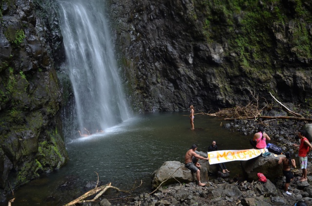 "Stop Monsanto", bombé en orange vif sur une large banderole blanche, au pied de la majestueuse cascade de Tipaerui... Hors contexte, cela aurait pu avoir quelque chose de singulièrement déplacé. Samedi pourtant, c’est le mode choisi par le collectif Gaya Origin et sa cinquantaine de marcheurs manifestants, pour donner de l'ampleur au message de ceux qui, en Polynésie aussi, souhaitent exprimer les craintes que leur inspire l’emprise sur leur quotidien, méconnue mais redoutable, de Monsanto le géant américain des biotechnologies agricoles et des semences.