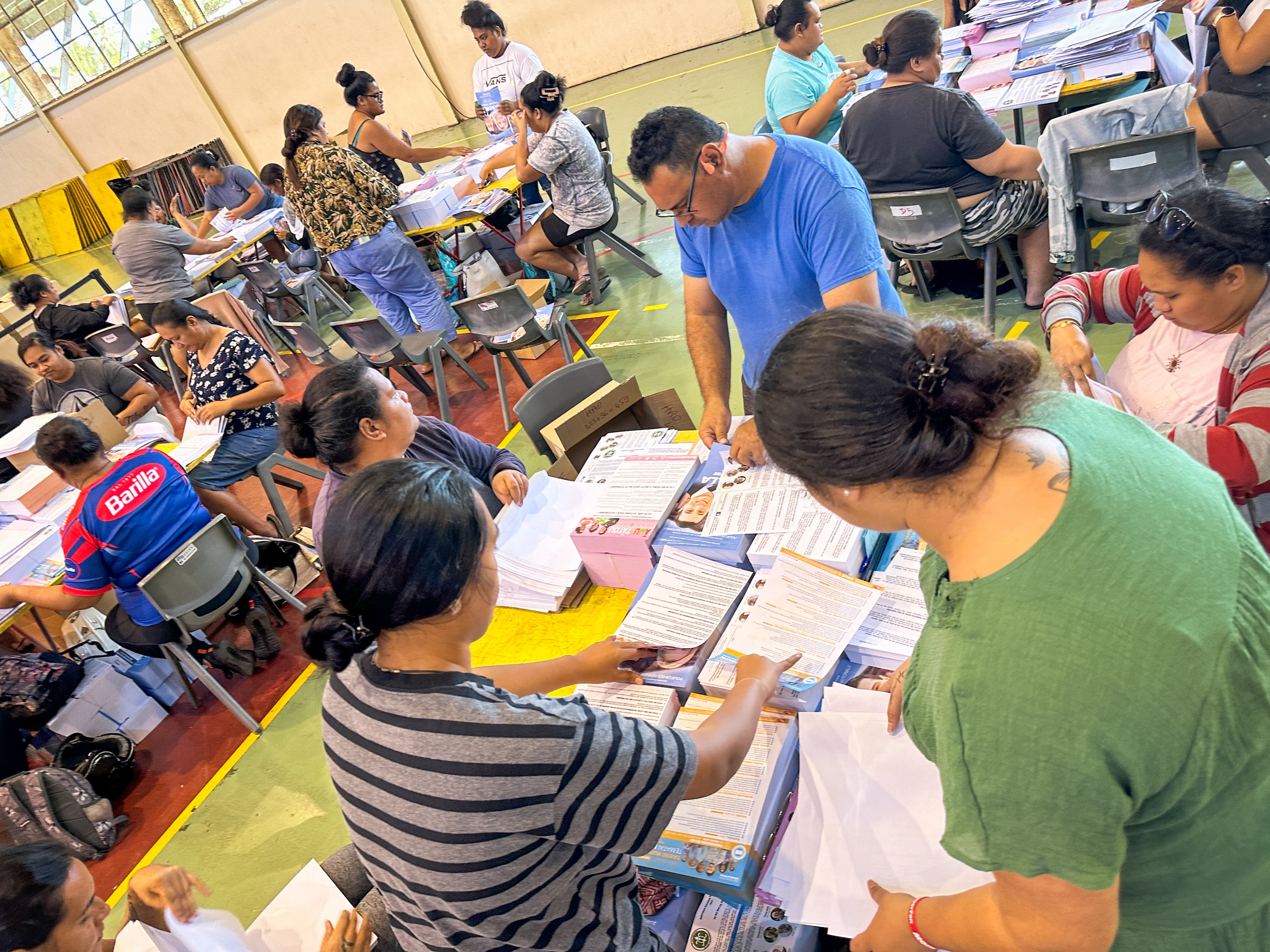 Tahiti, le 20 juin 2024 – Ce jeudi, au complexe sportif Boris-Léontieff de Arue, a eu lieu la mise sous pli des professions de foi et des bulletins de vote des prochaines élections législatives. Une organisation au pied levé pour le haut-commissariat mais qui a le mérite toutefois de profiter à certains acteurs locaux.