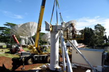 Ce chantier d'envergure est le premier pour l’OPT depuis huit ans. Il s'agissait là encore d'assurer me montage d’une antenne Polysat. Les équipes techniques de l’OPT supervisent les manœuvres sur le terrain à Papenoo, opérées par une entreprise prestataire, qui utilise des grues uniques sur le fenua, en raison du poids des pièces à manœuvrer.
