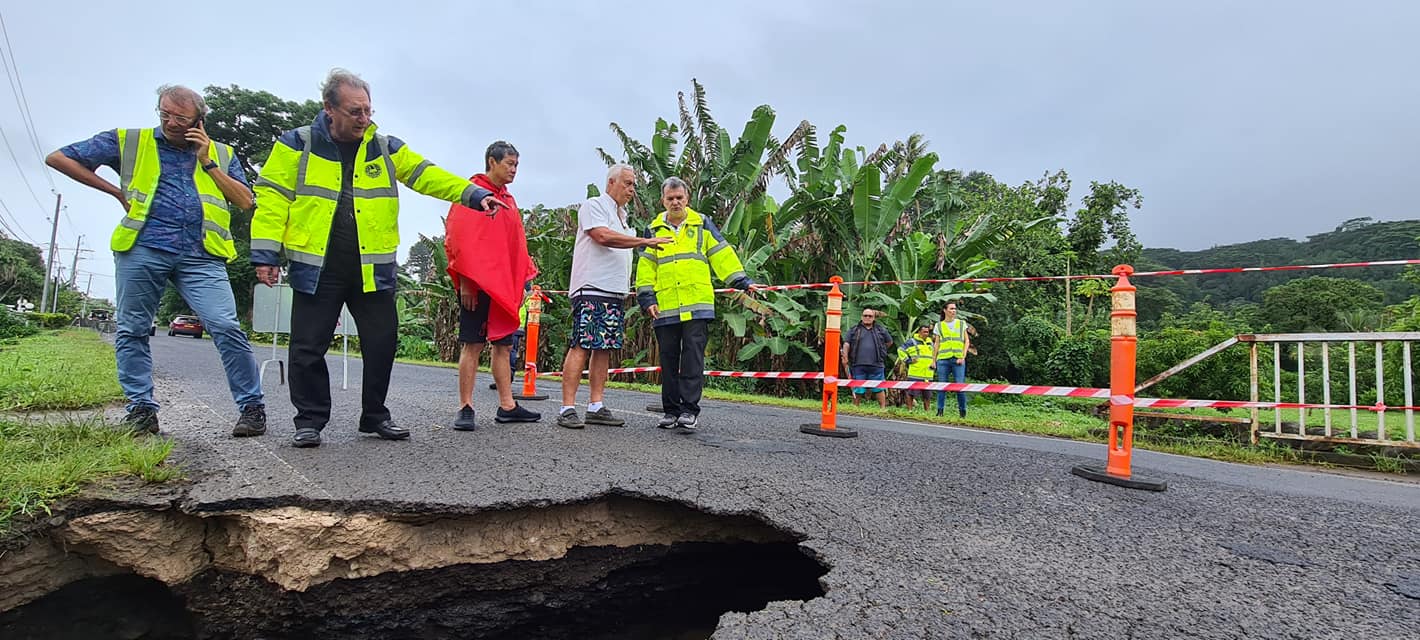 Une partie du pont de Pueu à Taiarapu-est a cédé la nuit dernière. Le ministre des Grands Travaux, René Temeharo, s'est rendu sur place samedi et a recommandé à la population de limiter ses déplacements ce wwekend. Après concertation des équipes techniques et des tavana de Taiarapu-est, de Pueu, de Tautira et de Afaahiti, un arrêté municipal a été pris par la commune de Taiarapu-est afin de fermer la circulation sur le pont et ce, jusqu'à nouvel ordre.