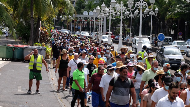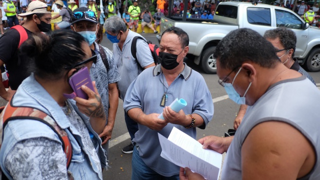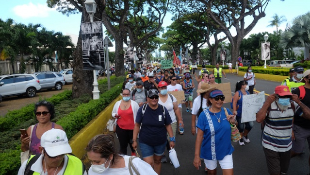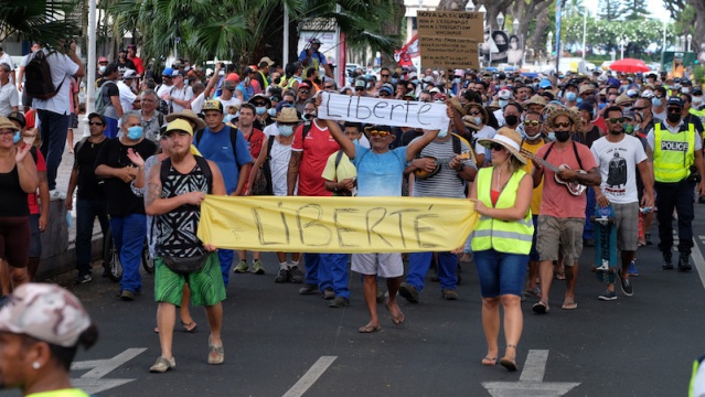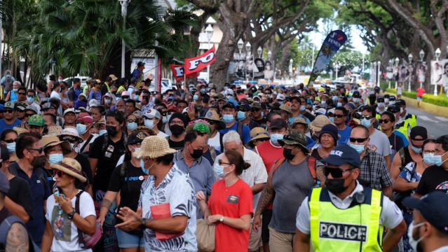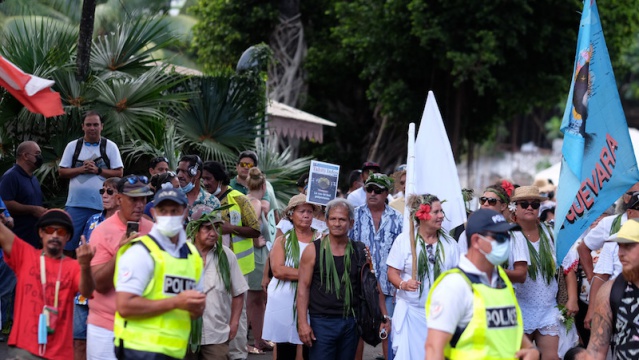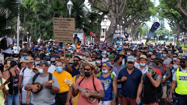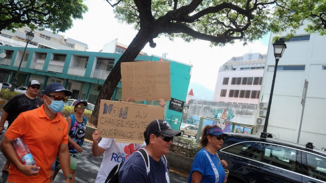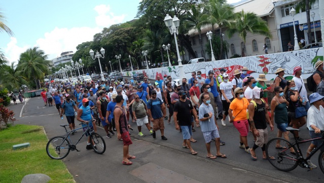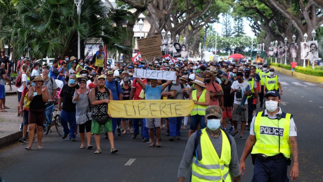 Parmi eux, des grévistes des principaux bastions syndicaux ayant répondu à l'appel à la grève générale -CPS, OPT, EDT, ADT ou encore Port autonome…– mais aussi des collectifs opposés à l'obligation vaccinale et des membres de l'Église protestante maohi parmi lesquels son président François Pihaatae. Des militants qui brandissaient des pancartes "liberté" et clamaient également leur opposition au pass sanitaire. Syndicats et collectifs se retrouvant sur l'une des revendications de la grève générale : le retrait de la loi du Pays sur l'obligation vaccinale des soignants, personnes à risque et personnes en contact avec le public.