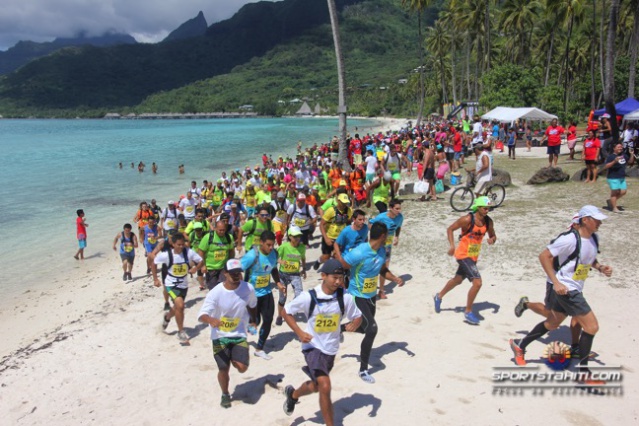 MOOREA, le 31 octobre 2016- Le soleil était au rendez-vous pour cette première édition du Raid des entreprises organisé par le Te Moorea Club, présidé par Vaitia Buchin. Ce sont plus de 200 équipes composées de deux athlètes soit 400 personnes qui étaient sur la ligne départ d’un parcours qui n’a été dévoilé que dans les dernières minutes qui ont précédé le « Top départ ».