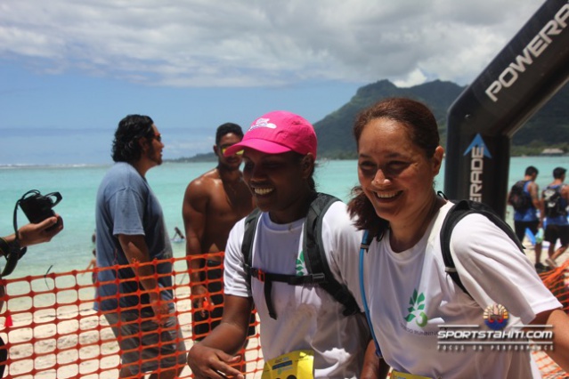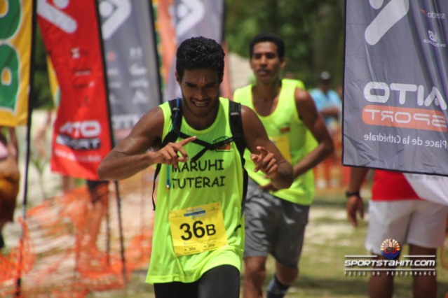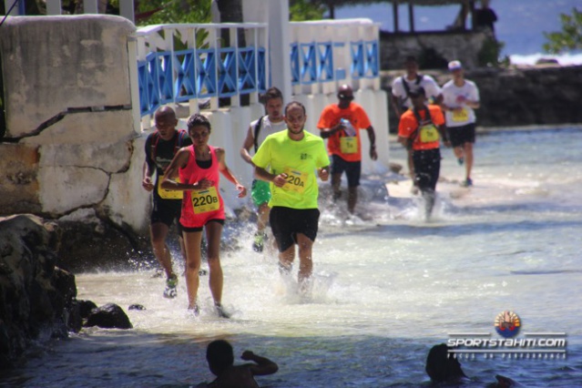 Ce parcours « surprise » de 8,2 kilomètres démarrait sur la plage de Temae, direction l’aéroport sur la route de sable puis un passage sur les « iri’iri » (cailloux de plage) d’1,5 kilomètre pour revenir sur la plage de Temae et enclencher la seule mais très raide, montée de l’OPT pour ensuite redescendre vers le « bassin d’eau » pour une arrivée à Temae.