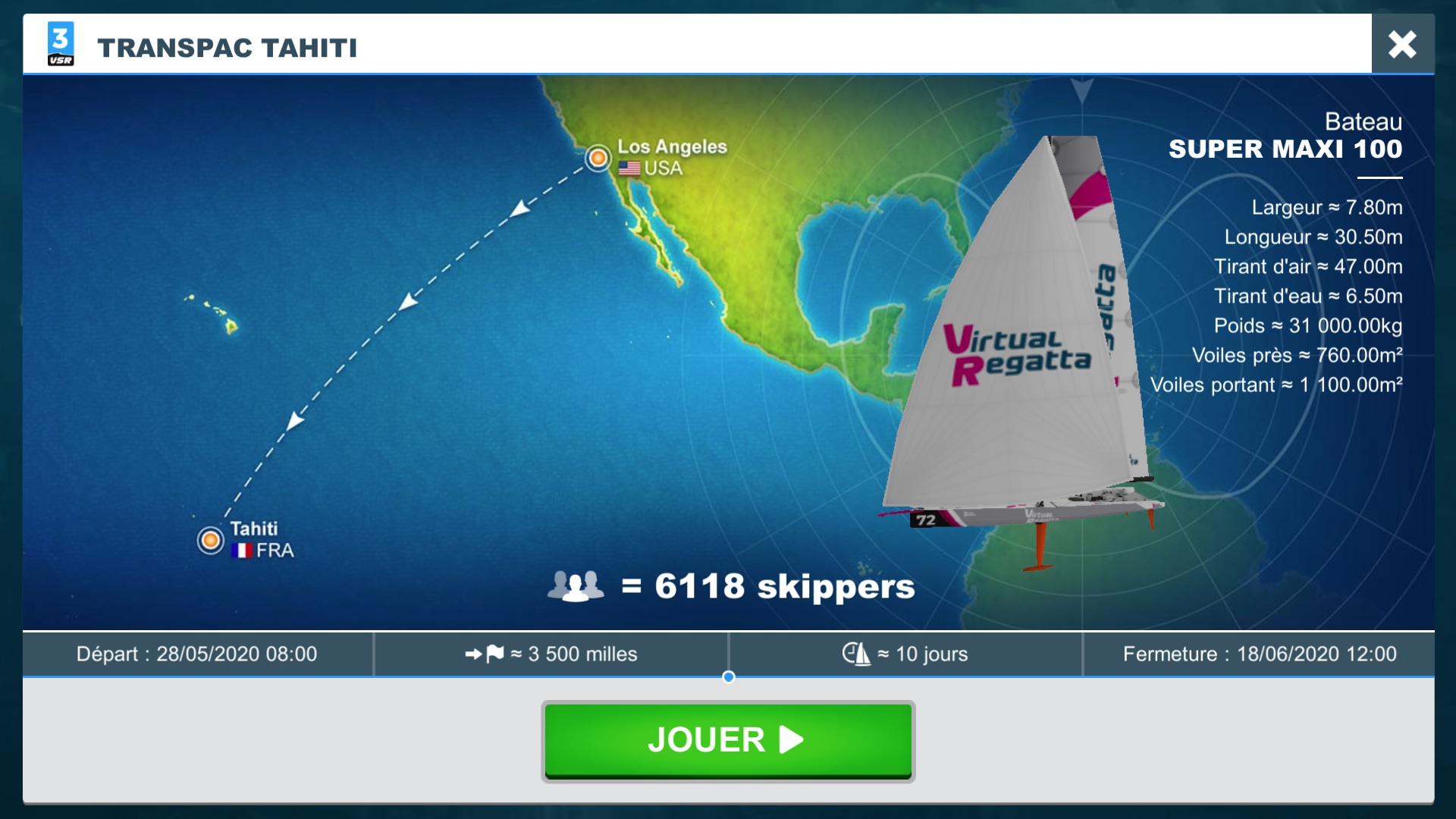 A noter que le célèbre skipper Loïck Peyron parrainera la Transpac Tahiti sur Virtual Regatta, et donnera également des conseils aux jeunes des écoles de voiles.