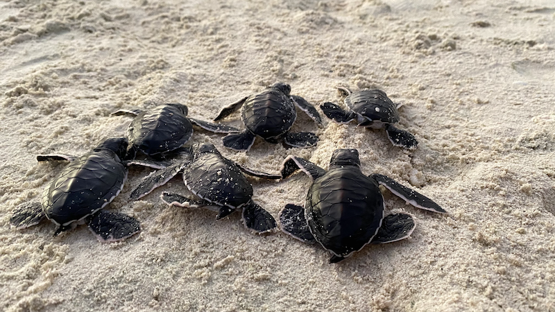 Cette année, près de 35 000 bébés tortues vertes sont nés à Tetiaroa sous la protection de l'association Te mana o te moana. Crédit photo : Théo Guillaume / Te mana o te moana.