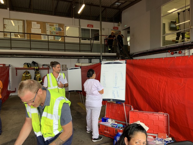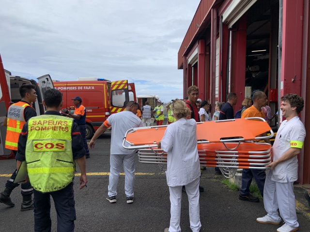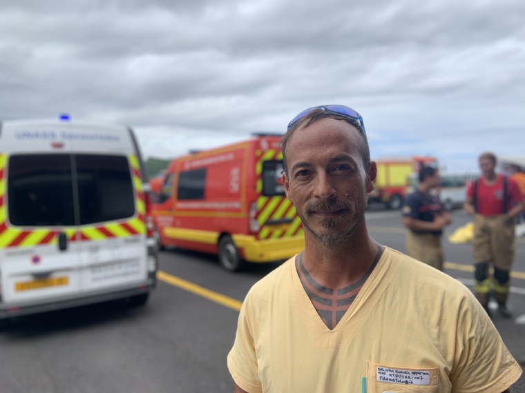 “J'ai coordonné l'ensemble des aspects, en amont, pendant, et après cet exercice, pour la partie du CHPF. Le Samu du CHPF est en charge du poste médical avancé (PMA) et supervise la capacité de projection de nos remorques pour prendre en charge un grand nombre de victimes notamment dans des situations sanitaires exceptionnelles comme celle-là. Chaque remorque a la capacité d'accueillir 40 victimes, ce qui signifie que nous sommes en mesure de prendre en charge jusqu'à 400 victimes dans n'importe quel environnement, comme cela a été le cas aujourd'hui à l'aéroport.”