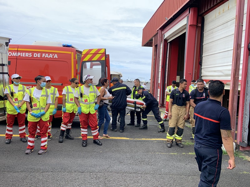 Un exercice grandeur nature a eu lieu à l'aéroport de Tahiti (ADT) ce jeudi matin. De l'autre côté du tarmac, près du SSLIA, les services de secours d'aérodrome, plus d'une centaine de personnes, membres de différents services du Pays et de l'État, ont participé à la simulation d'un accident d'aéronef, avec 149 personnes à bord. "C'était un scénario catastrophe d'un crash d'un avion après une difficulté sur un moteur”, détaille le commandant Alexandre de la Direction de la protection civile, responsable de l'exercice. “Ce scénario implique la nécessité d'entraîner de nombreux services pour être prêt au cas où cette situation catastrophe se produirait. Là, on a vraiment mis en place l'entièreté du dispositif Orsec (plan d'urgence de gestion de crise, NDLR).” Car c'est bien là l'enjeu de cette matinée : se tenir prêt en cas du pire. Et pour se rapprocher le plus possible d'une éventuelle réalité, des blessés et des morts fictifs ont été joués par des personnes extérieures.
