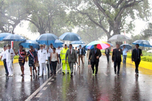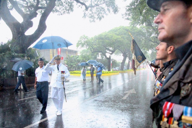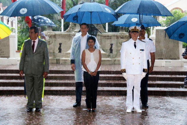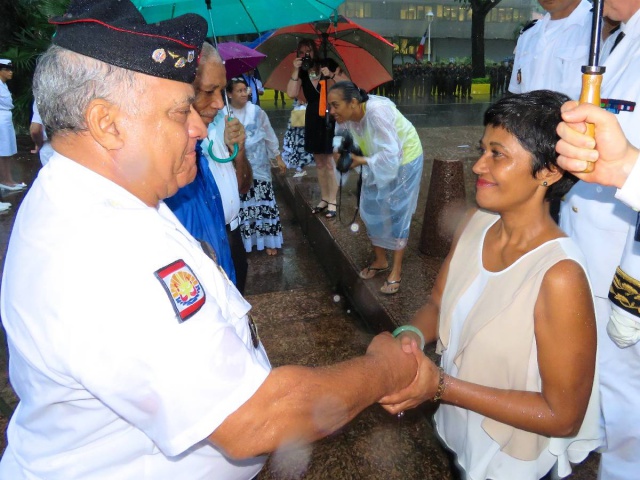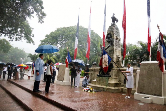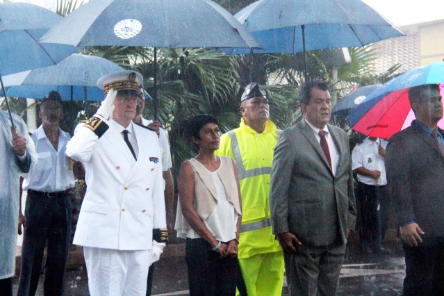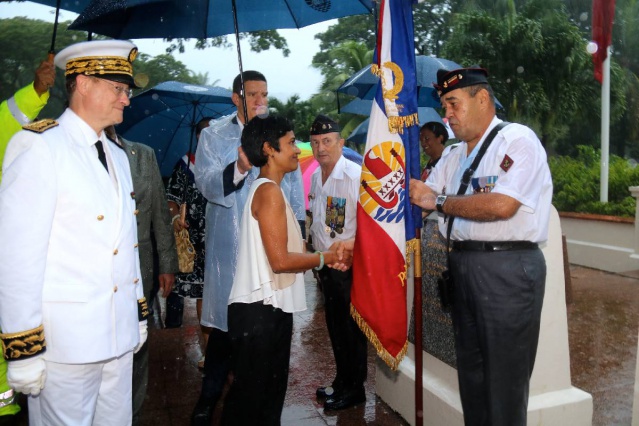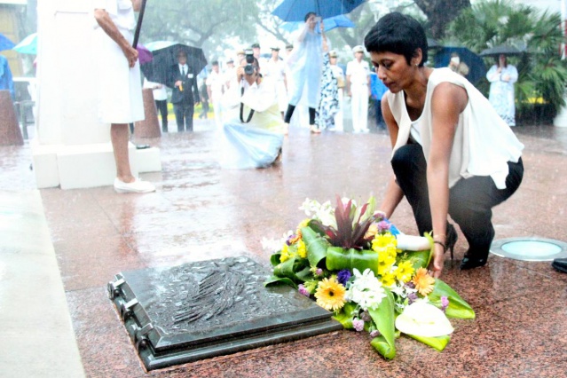 PAPEETE, le 17 février 2017. La ministre des Outre-mer Ericka Bareigts est arrivée ce vendredi matin au fenua. Avant de se rendre à la cellule de crise au haut-commissariat, elle a procédé à un dépôt de gerbe au monument aux morts.
