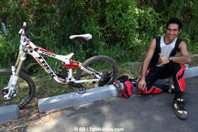 Pendant que le jeune Temarii participait au show de freestyle sur le front de mer la veille, Tehei s’entraînait avec acharnement avec l’objectif de remporter cette manche de la coupe de Tahiti de VTT descente.