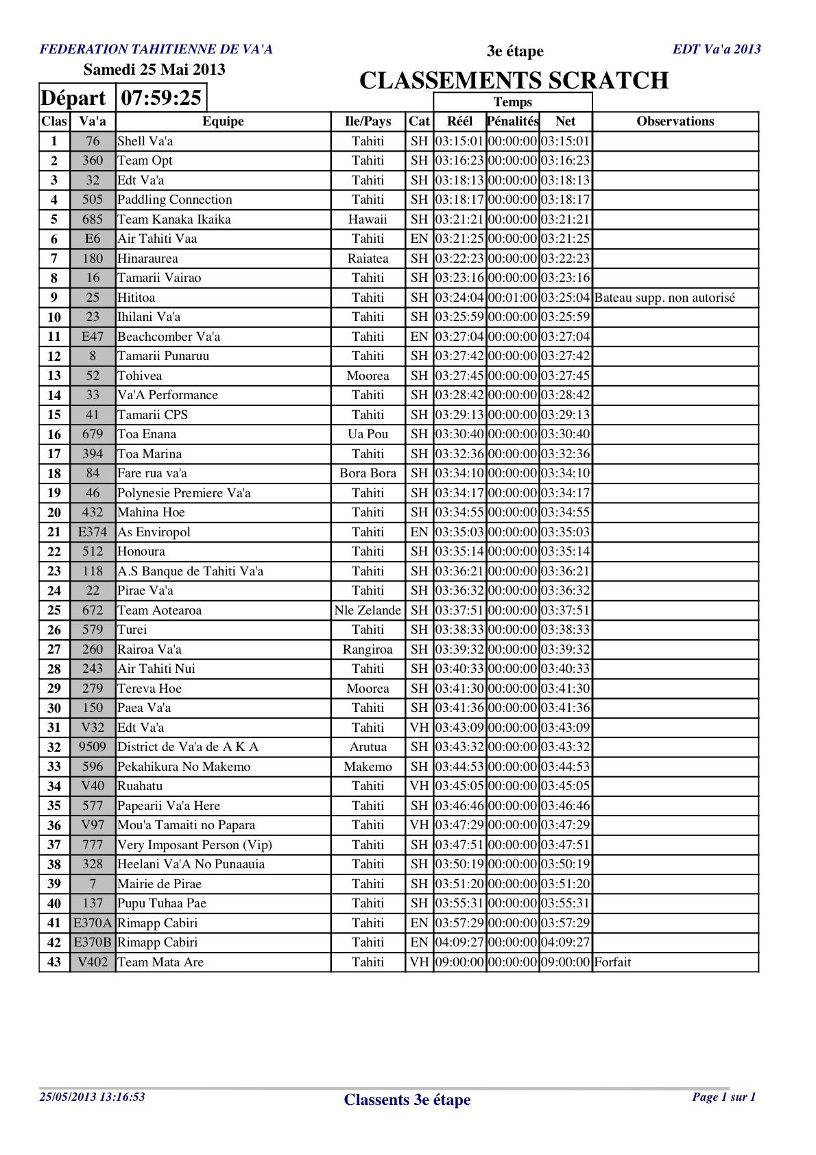 Samedi 25 mai 2013. En remportant les trois étapes, Shell-Vodafone gagne la course de 166 km la plus longue du monde. Edt Va’a espérait remporter une 3ème fois d’affilée le trophée, mais Shell-Vodafone l’en a empêchée en reléguant Edt Va’a à la 2ème place au général devant Team Opt.