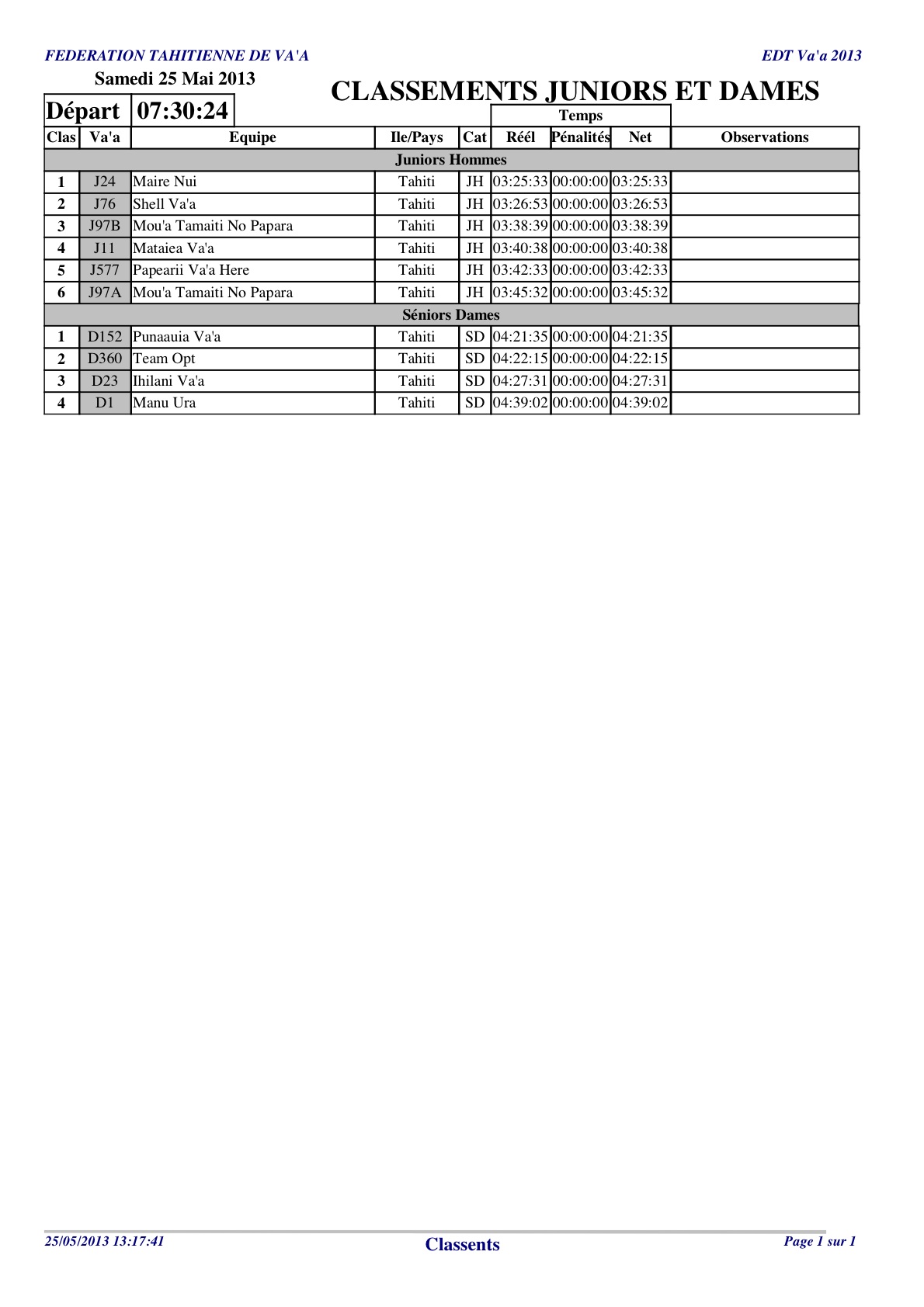 « Aujourd’ hui Edt Va’a arrive 3ème, 2ème au deux premières étapes, cette année on voulait défendre notre 3ème titre, ce qui n’a pas pu être fait. On a eu un souci avec un de nos leaders, Steve Teihotaata, qui a eu un gros problème à l’épaule, il n’a pas pu participer. Quand un leader vient à manquer, c’est très difficile de le remplacer, de reconstruire l’équipe, la cohésion, mais on a sauvé les meubles avec ce que l’on avait, puisque qu’on est 2ème au classement général.»