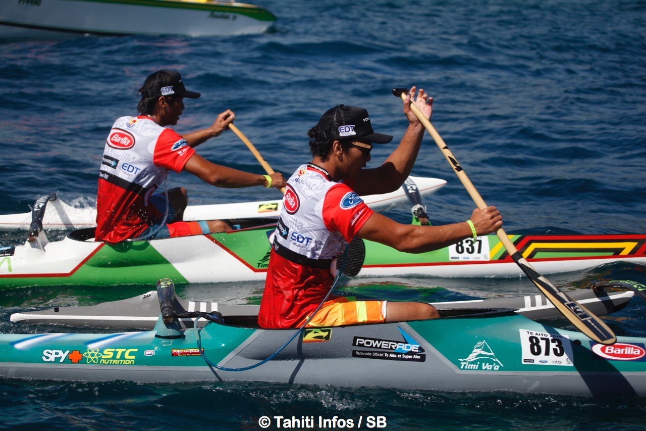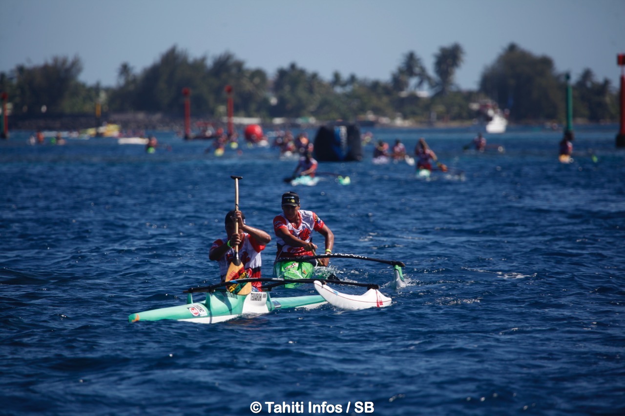 Au moment de rentrer dans la passe de Taunoa, Sly Ly Sao et Tutearii Hoatua sont au coude à coude, Hotuiterai Poroi et Revi Thon Sing arrivent quelques mètres plus tard, eux aussi au coude à coude. Dans la première partie de la remontée contre le vent, c’est Hotuiterai qui va réussir à prendre la tête de course.