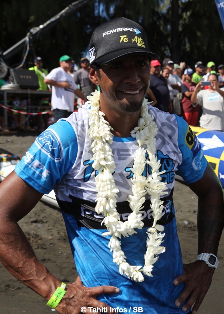 « Beaucoup d’émotion, je pense à mon père qui est à la clinique, il n’a pas pu faire la course des vétérans ce matin, je lui dédie cette victoire. Merci à ma famille de Huahine, et à ma petite famille. Maintenant, objectif Super Aito ! »