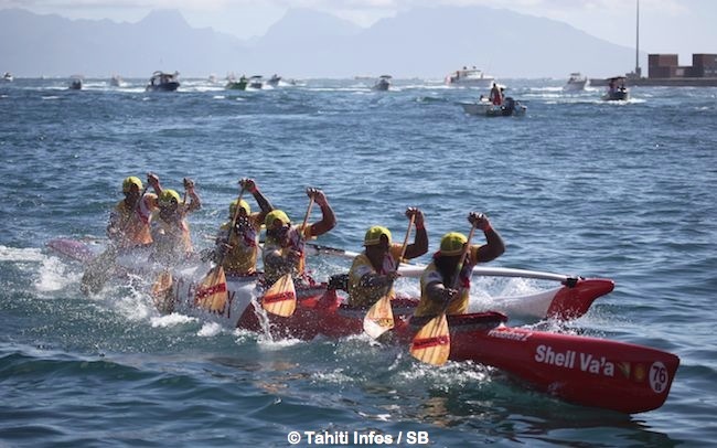 PAPEETE, le 5 juillet 2014. C’est au terme d’une course à changement de presque 6 heures que la pirogue de Shell-Vodafone a atteint la bouée de l’arrivée. Ils s’agissait, pour les 36 pirogues engagées, de partir de la rade de Papeete en direction de la pointe Temae, de faire le tour de l’île de Moorea puis de revenir, contre le vent, jusqu’au point de départ. C’est la course la plus longue de l’année.