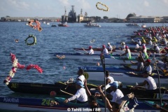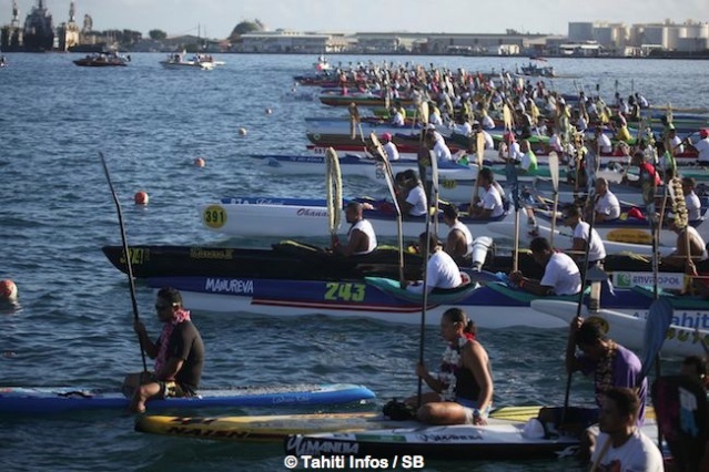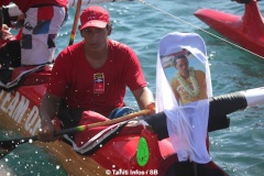 Avant le départ, un hommage vibrant a été rendu à Tainuiatea Vairaaroa, le rameur du team Opt et capitaine de la sélection tahitienne disparu tragiquement le lundi 30 juin dernier. La famille du jeune athlète était présente et la souffrance encore bien palpable lors de cette course qui aurait dû se faire avec sa participation, si le destin n’en avait pas voulu autrement. La pirogue de Team Opt franchira la ligne d’arrivée à 5 en hommage au champion.