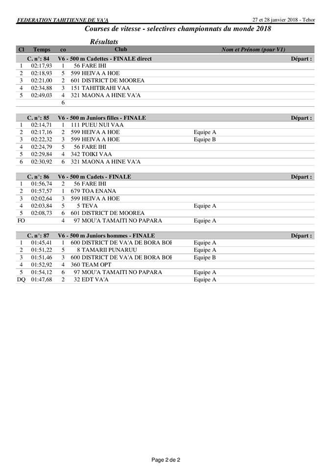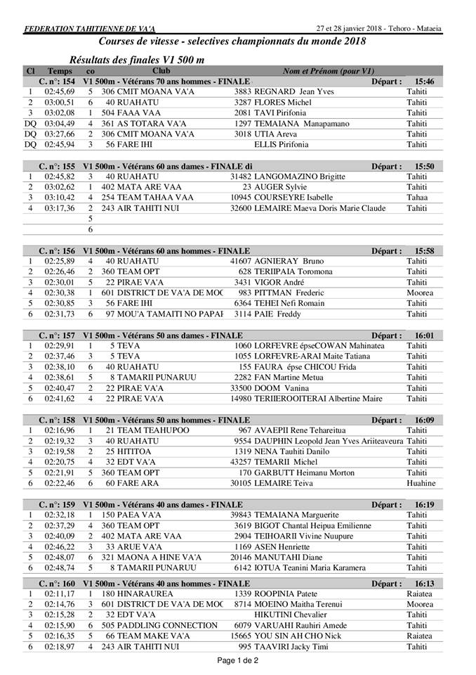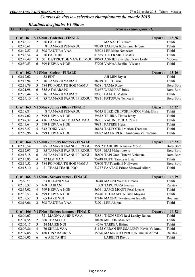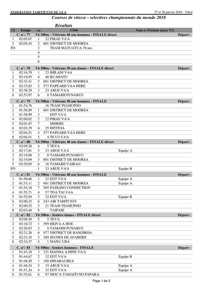 Les trois premiers de chaque course sont qualifiés, pour le reste, il faudra attendre les résultats des sélectives des îles qui doivent encore se dérouler. Le président de la fédération Rodolphe Apuarii n’a pu que constater que les « grands clubs » n’ont pas formé d’équipe pour ces championnats du monde. « Le vitesse et le marathon, ce sont deux choses différentes, je le comprends, mais c’est quand même dommage ».